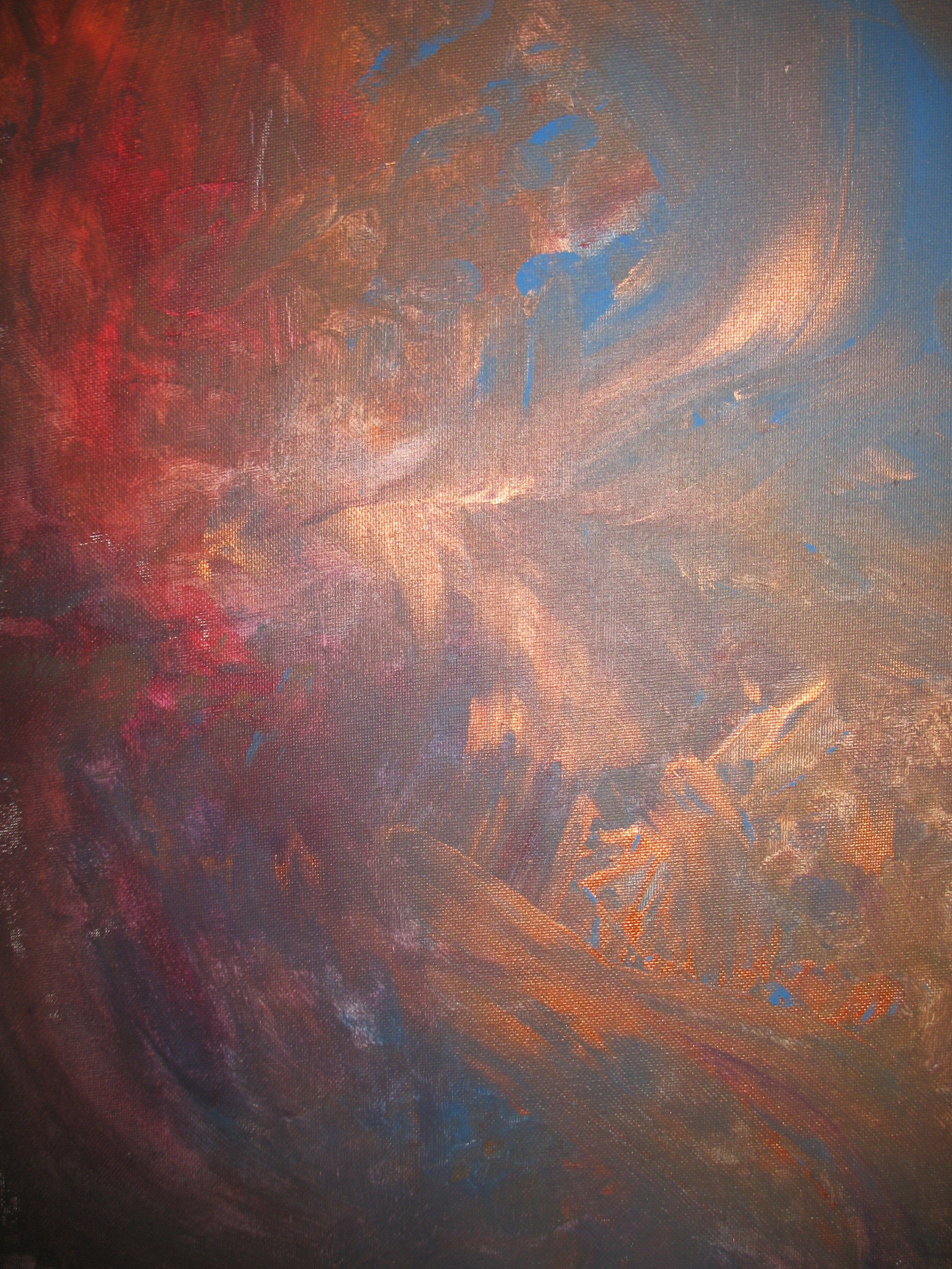 Enjoy beatiful painting by 3 1/2 year old boy Jude from Texas, USA. Most people see a kneeling angel in the bottom right hand side. This was the 6th painting he ever did (age 2 1/2) when he only used his hands to paint.