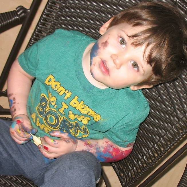 “Every child is an artist” – Pablo Picasso. Three and half year old nonverbal young artist Jude is expressing his sweet thoughts through every colorful and vibrant stroke of his brush onto the canvas. He has a basket of tools to paint with from whisk broom, scraps of wood trim, plastic egg shells, and sponges. This toddler artist is making the most of his art supply whenever he is in the mood to paint. His granny Ann Cutshall did a smart experiment while going through the process of exploring different therapies by putting the canvas and paint in front of him. Art and Jude gelled well together and in a matter of a short time, a passionate artist evolved to display his wonderful talent. We are proud of toddler Jude for his artistic talented creativity. Ann has answered on Jude's behalf.